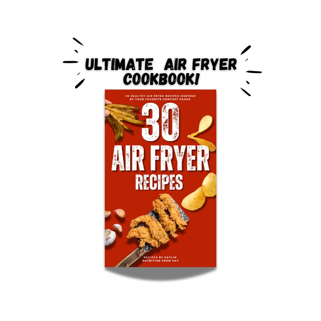 This cookbook is ALL about air fryer recipes! These recipes take your favorite comfort foods, and make them lighter in calories & oil while keeping the steps/instructions SUPER EASY!
